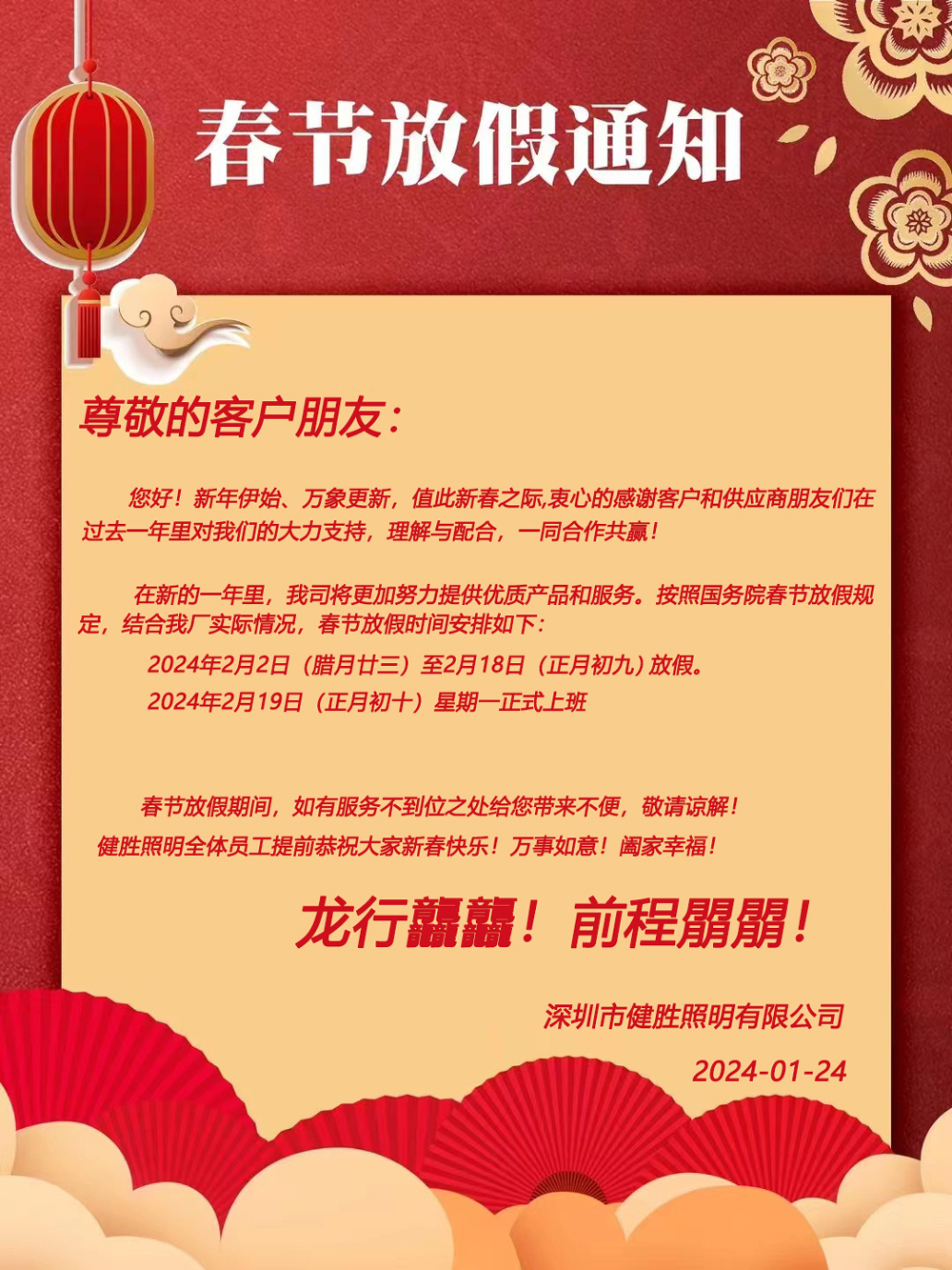 您好!新年伊始、万象更新,值此新春之际,衷心的感谢客户和供应商朋友们在过去一年里对我们的大力支持,理解与配合,一同合作共赢!